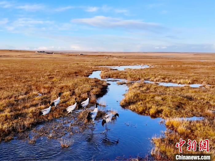 圖為黑頸鶴結(jié)伴覓食。桑吉才讓 攝