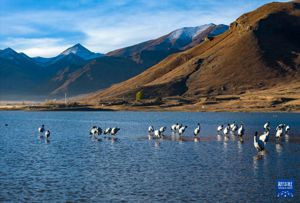 10月下旬,西藏自治區(qū)拉薩市林周縣迎來2023年第一批越冬黑頸鶴。它們將在這里一直待到來年三四月份。黑頸鶴是國家一級保護動物,主要棲息在海拔2500米至5000米的高原、草甸、沼澤地帶。拉薩北部的林周縣平均海拔約4200米,是黑頸鶴的主要越冬地之一。