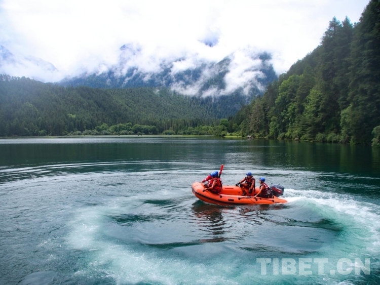 圖為消防隊員在草湖中開展舟艇駕駛訓練 圖源:林芝市森林消防支隊