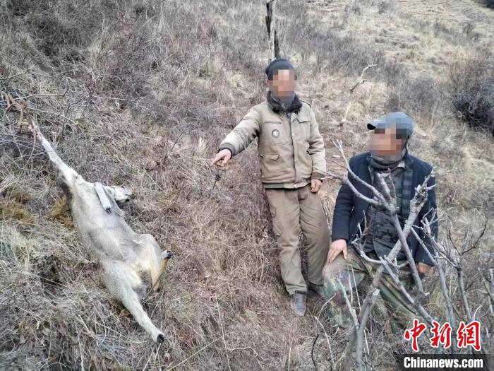 據(jù)介紹,2023年12月10日,瑪沁縣公安局森林警察大隊(duì)民警在日常巡查工作中發(fā)現(xiàn),有人在瑪沁縣雪山鄉(xiāng)轄區(qū)非法獵捕陸生野生動物,經(jīng)摸排蹲守,現(xiàn)場抓獲非法獵捕陸生野生動物的馬某賽、馬某全2名犯罪嫌疑人,查扣被捕獸夾夾住的疑似馬麝動物1只。
