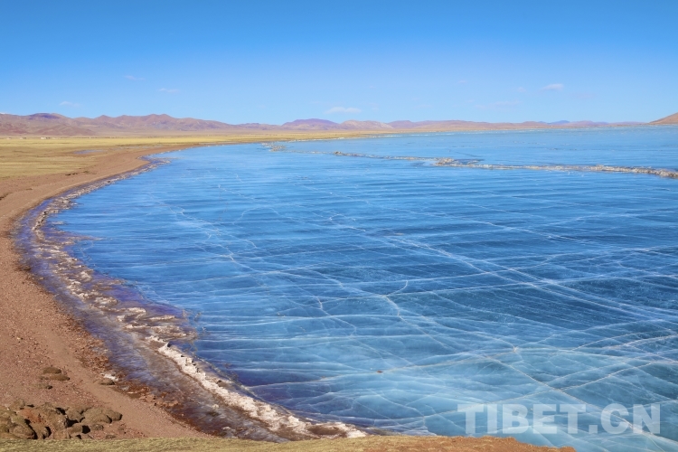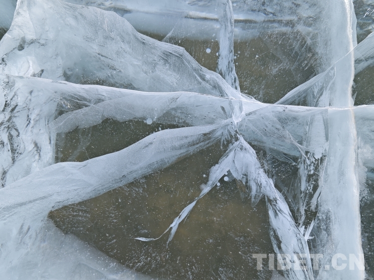 錯(cuò)那湖湖面海拔4600米左右,面積400多平方公里,是世界上海拔最高的淡水湖,更有冰泡、冰裂、冰推等奇妙的自然景觀。當(dāng)氣溫急劇下降時(shí),水溫也驟降,湖底產(chǎn)生的氣體在上升過程中被凍在冰中,形成許多細(xì)小的白色氣泡,懸浮在厚厚的冰層之中。湖水表面一層被藏北的朔風(fēng)快速凍結(jié)成冰,部分碎冰在岸邊堆積,形成隆起的“冰岸線”。又由于初春晝夜溫差較大,湖冰崩裂,形成網(wǎng)狀的冰裂紋路。這些透明裂紋從岸邊開始,像潮水一樣漫過平地,漫過羌塘草原腹地,漫到天邊,把羌塘大地裝扮成一個(gè)冰晶縱橫交錯(cuò)的世界。(中國西藏網(wǎng)文/李一凡 張萌萌 龍真多吉)