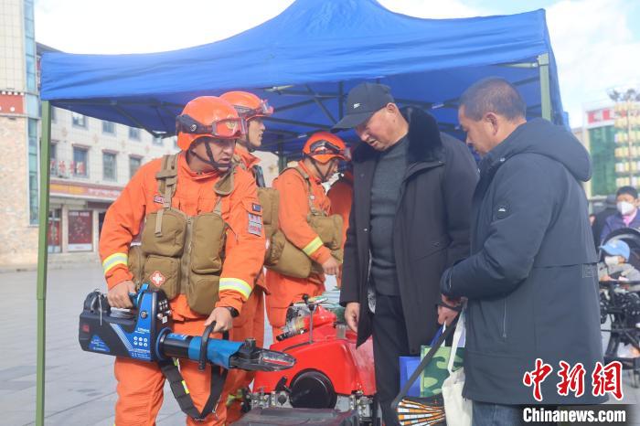 圖為消防員正在開(kāi)展防火知識(shí)普及。西繞拉翁 攝