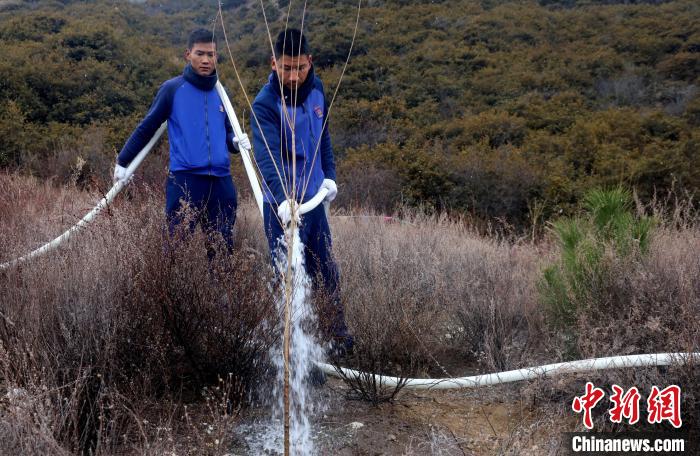 圖為林芝市巴宜區(qū)森林消防中隊(duì)澆水灌溉。巴宜區(qū)森林消防中隊(duì)供圖