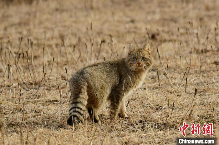圖為祁連山國家公園青海片區(qū)管護員拍攝到的荒漠貓。王國忠 攝