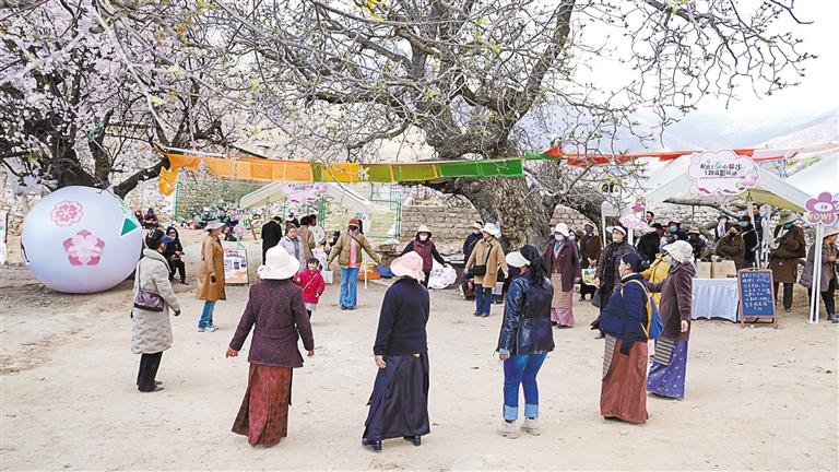 每年4月初,拉薩北郊山上的桃花就會燦爛盛開,是市民游客最愛的賞花打卡地之一。4月12日,2024年娘熱上春山徒步主題攝影周在娘熱街道嘎如古村舉辦。在明媚的春光里,內容豐富、形式多樣的賞花、品美食小吃、逛花間集市系列互動活動,為廣大游客和市民奉上了一場春日的盛宴。