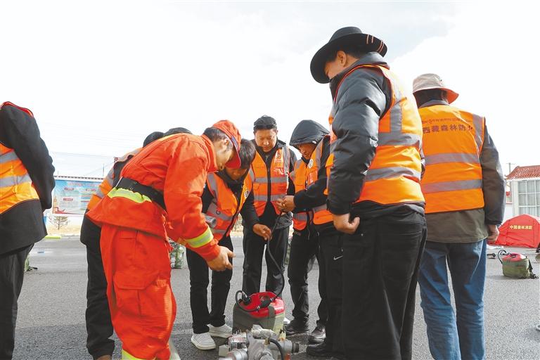 消防員向管護(hù)員培訓(xùn)防滅火設(shè)備的使用和維護(hù)知識(shí)。通訊員 甄小龍 次仁多杰 攝