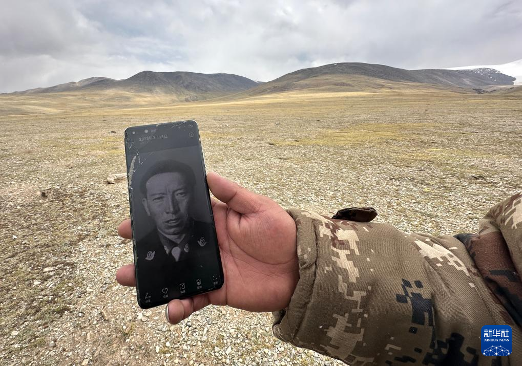 6月15日,格桑倫珠向記者展示他手機(jī)中珍藏的羅布玉杰的照片。新華社記者 費茂華 攝
