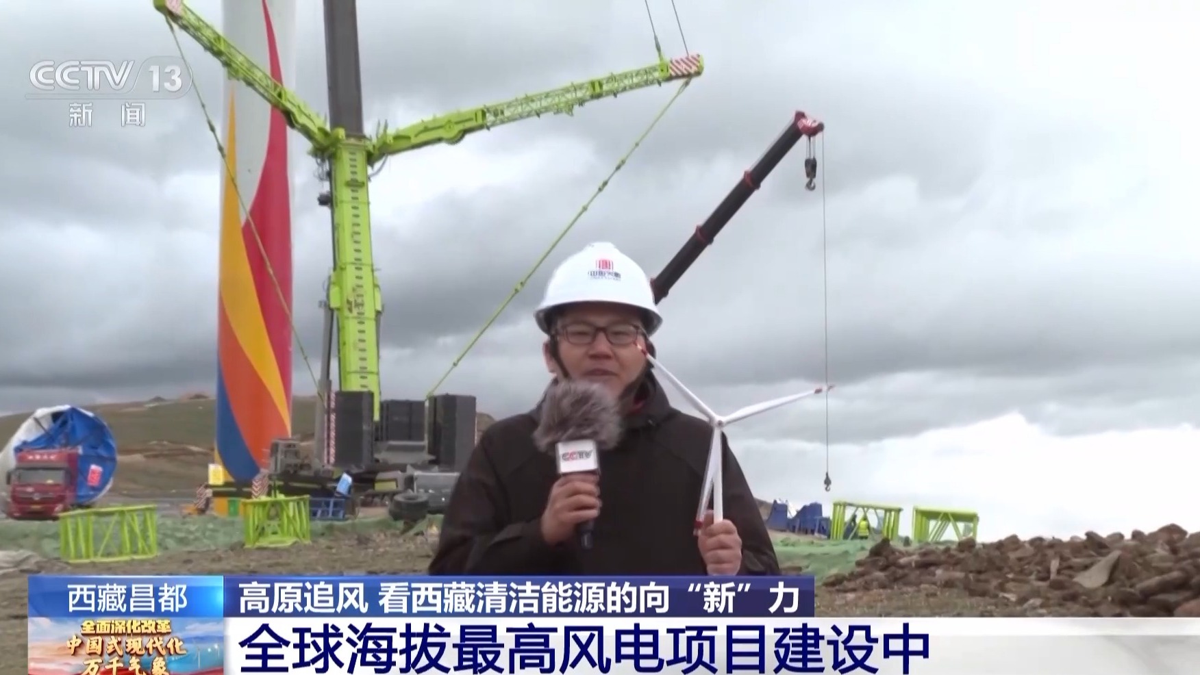 總臺(tái)記者 蔣勇:我現(xiàn)在是在西藏昌都市八宿縣全球海拔最高的風(fēng)電項(xiàng)目——八宿風(fēng)電的施工現(xiàn)場(chǎng)。這里的平均海拔達(dá)到5050米,最高處接近5200米。如果加上風(fēng)機(jī)自身的高度,風(fēng)機(jī)的最高海拔將達(dá)到5300米。西藏清潔能源十分豐富,而風(fēng)能資源主要集中在5000米以上的超高海拔地區(qū)。