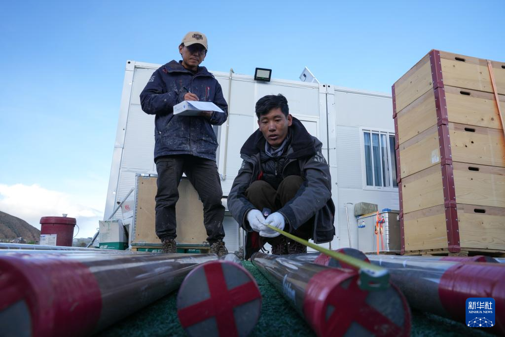 7月11日,鉆探人員在操作設(shè)備,準(zhǔn)備進(jìn)尺作業(yè)。新華社記者 晉美多吉 攝
