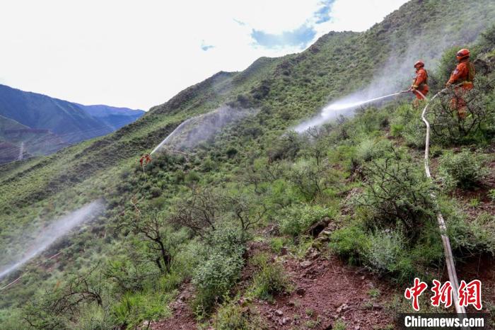 西藏昌都森林消防野外駐訓期間進行合圍滅火訓練。姚天銳 攝