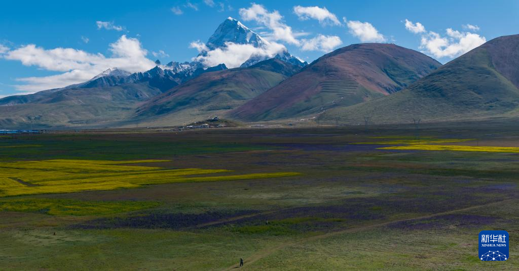 這是8月1日從帕里草原拍攝的卓木拉日雪山(無(wú)人機(jī)照片)。新華社記者 姜帆 攝