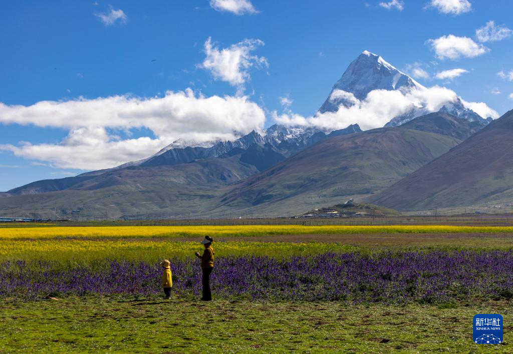8月1日,游人在多慶錯(cuò)國(guó)家濕地公園拍攝卓木拉日雪山。新華社記者 姜帆 攝