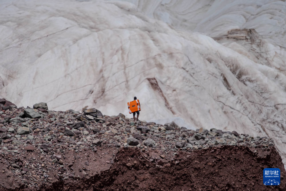 7月25日,在冬克瑪?shù)妆?,科考?duì)員準(zhǔn)備攀爬冰川。新華社發(fā)(杜笑微 攝)