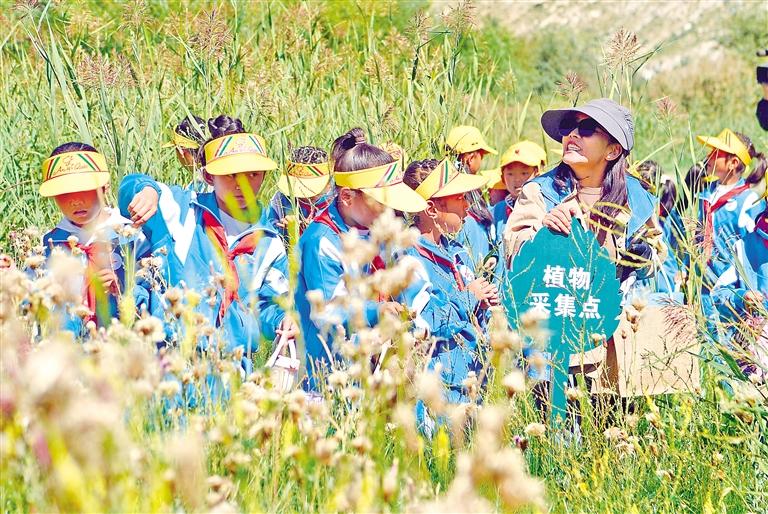 圖為8月15日,專業(yè)老師帶領(lǐng)小學(xué)生們在拉魯濕地觀察、采集植物樣品。記者 格桑倫珠 攝