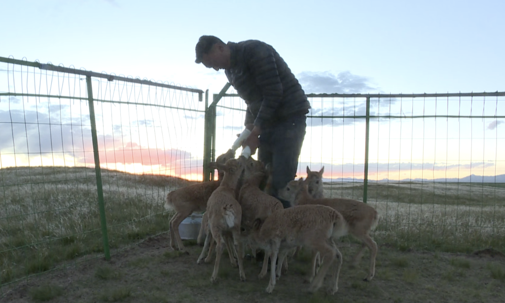 “小藏羚羊剛到保護站的時候身體比較虛弱,狀態(tài)不佳。”索南達杰保護站駐站隊員才仁洛松說,隊員們每天需要給小藏羚羊喂三次牛奶,晚上還會在小藏羚羊房間的地上鋪上褥子,保持室內(nèi)溫度。這種細心的照顧讓保護站的隊員們被大家形象地稱為小藏羚羊“奶爸”。