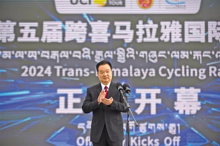 21日上午,2024中國西藏第五屆跨喜馬拉雅國際公路自行車極限賽在拉薩市布達拉宮廣場隆重開幕。自治區(qū)黨委書記王君正出席開幕式并宣布本屆比賽開幕。