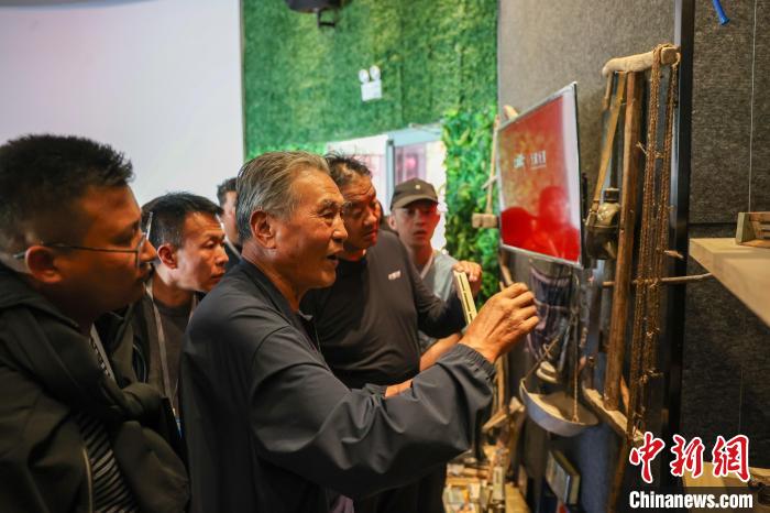 9月24日,記者跟隨2024年青海湖生態(tài)保護能力提升培訓(xùn)班來到青海省海南藏族自治州貴德縣青海青藏蜜蜂良種養(yǎng)殖場,采蜜人為學(xué)員介紹采蜜工具。中新社記者 薛蒂 攝