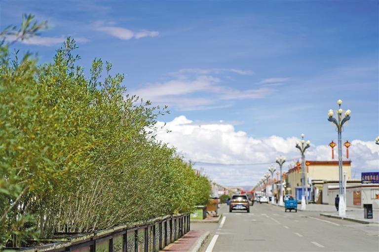 圖為綠意盎然的措勤縣城街道。記者 洛桑旦增 攝