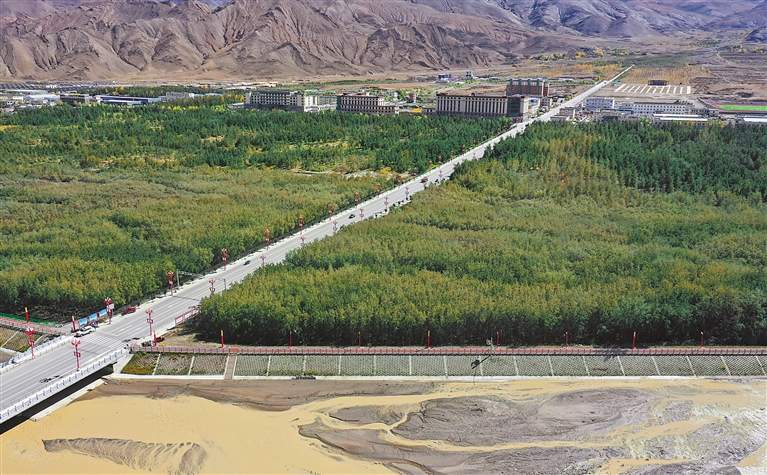 山南市隆子縣地處高寒干旱區(qū),平均海拔3800多米,冬季寒冷漫長(zhǎng),漫天風(fēng)沙嚴(yán)重影響當(dāng)?shù)厝罕娚a(chǎn)生活。從20世紀(jì)60年代開始,世代飽受風(fēng)沙肆虐的隆子人民,開始栽種沙棘,接續(xù)治沙。一場(chǎng)撼人心魄的“生態(tài)革命”,在隆子河谷悄然拉開帷幕。經(jīng)過半個(gè)多世紀(jì)的辛勤栽植,隆子河谷筑起了一道40余公里、面積超50平方千米的“綠色長(zhǎng)城”,2019年被世界紀(jì)錄認(rèn)證機(jī)構(gòu)WRCA認(rèn)證為“世界最大人工種植連片沙棘”。俯瞰這片沙棘林,猶如一條“綠色哈達(dá)”,守護(hù)著這里的碧水藍(lán)天。