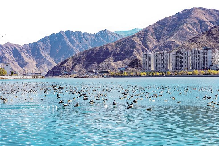 11月22日,記者來(lái)到拉薩市濱河公園和拉薩大橋,發(fā)現(xiàn)已有眾多候鳥陸續(xù)抵達(dá)拉薩,鳥類數(shù)量顯著增多。遠(yuǎn)處的雪山巍峨靜謐,拉薩河靜靜流淌,而靈動(dòng)的候鳥為這番景色增添了無(wú)限的生機(jī)與活力,一幅山水靜好、飛鳥翔集的美麗生態(tài)畫卷在眼前展開。