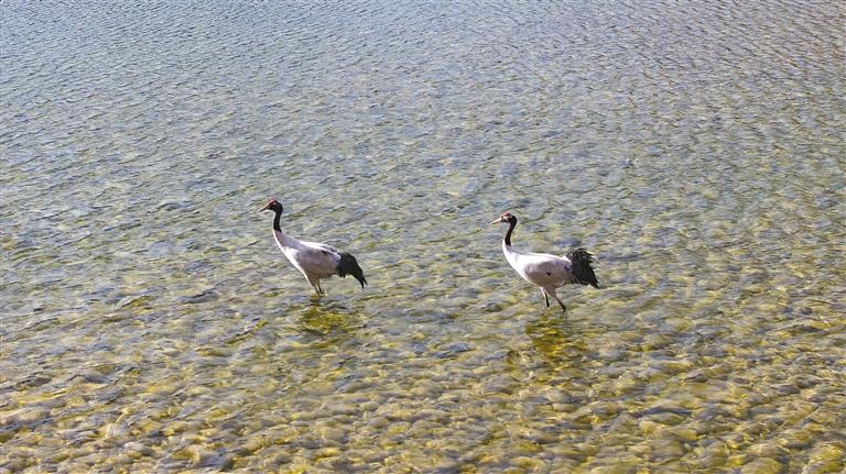 黑頸鶴,作為國家一級(jí)保護(hù)動(dòng)物,藏語名稱為“沖沖”,享有“吉祥鳥”的美譽(yù)。這種珍稀鶴類主要棲息于海拔2500米至5000米的高原、草甸、沼澤地帶,是鶴類中唯一能在高原地區(qū)完成繁殖和越冬的鶴類。獨(dú)特的生態(tài)習(xí)性,使其被譽(yù)為“高原仙鶴”,成為鶴類中當(dāng)下唯一的高原居民。