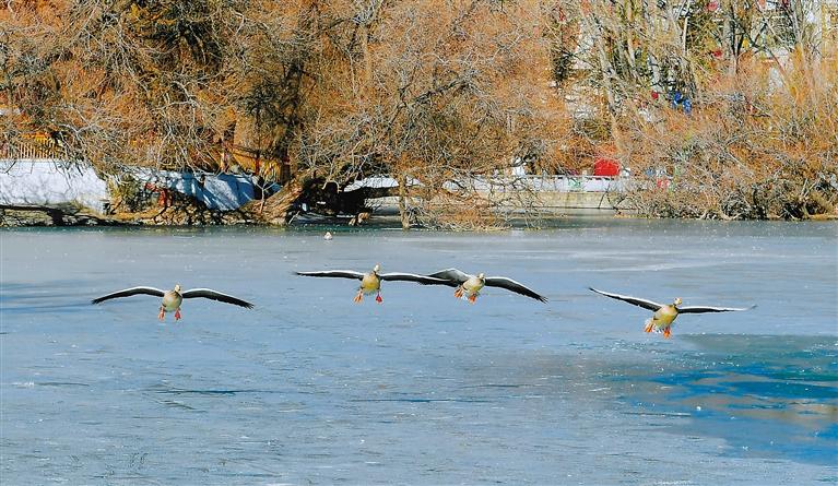 入冬以來,大批候鳥飛抵拉薩棲息越冬。拉薩河、宗角祿康公園等地成為它們的天堂,眾多候鳥為冬日的拉薩增添了一道亮麗的風景。