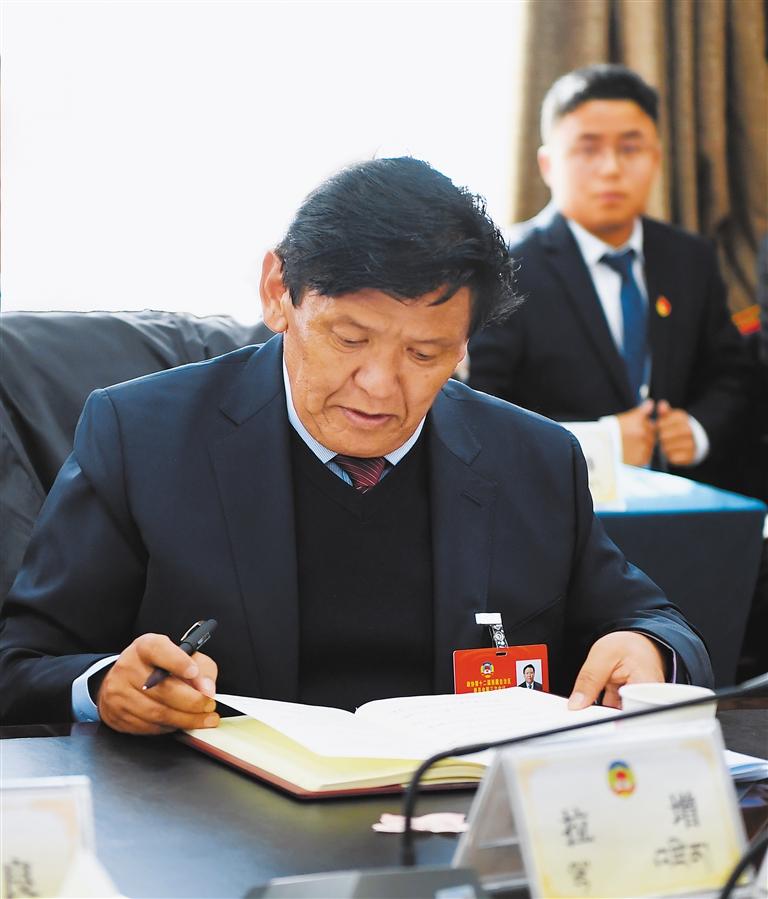 在分組討論時,結(jié)合自身調(diào)研成果和工作實際,就全區(qū)生態(tài)環(huán)境保護工作提出了意見和建議。拉增告訴記者,在過去的一年里,他堅持把本職工作和政協(xié)委員職能聯(lián)系起來,邊學(xué)習(xí)、邊思考、邊指導(dǎo)實際工作。期間,積極與兄弟省市同行人員溝通,學(xué)習(xí)借鑒區(qū)外森林草原防滅火、荒漠化綜合治理等生態(tài)保護方面的先進經(jīng)驗和做法?!白鳛橐幻f(xié)委員,我積極履職盡責(zé),結(jié)合工作實際,圍繞林草資源保護等問題認真開展調(diào)查走訪,傾聽民意,撰寫了‘讓綠色擁抱大地 讓火災(zāi)遠離森林’等調(diào)研材料。先后赴昌都市、那曲市參加了自治區(qū)政協(xié)組織開展的產(chǎn)業(yè)發(fā)展調(diào)研工作。”