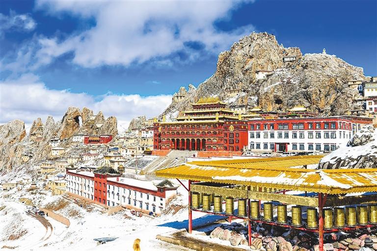 冬季的昌都,是一場視覺的盛宴。當潔白的雪花悠然飄落,覆蓋了連綿的山巒與靜謐的然烏湖,這里仿若成了大自然巧手繪制的一幅多彩畫卷。而大雪覆蓋著的三色湖,此刻也別有風(fēng)情,皚皚白雪如同輕柔的面紗,遮住了她的容顏,卻又增添了幾分神秘的魅力。遠遠望去,仿佛三個羞澀的美麗姑娘,欲語還休,吸引著人們?nèi)ヌ綄に拿孛?。再看看孜珠寺,金頂白雪、紅墻銀衣,古色古香的建筑加上絕美的雪景,時間仿佛在此刻凝結(jié)。