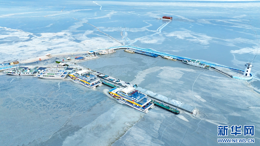 這是2月15日拍攝的青海湖二郎劍景區(qū)一角(無人機(jī)照片)。新華網(wǎng)發(fā) (宋忠勇 攝)