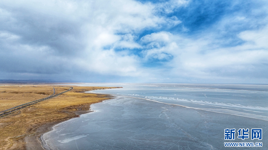 這是2月15日拍攝的青海湖北岸一角(無人機(jī)照片)。新華網(wǎng)發(fā) (宋忠勇 攝)