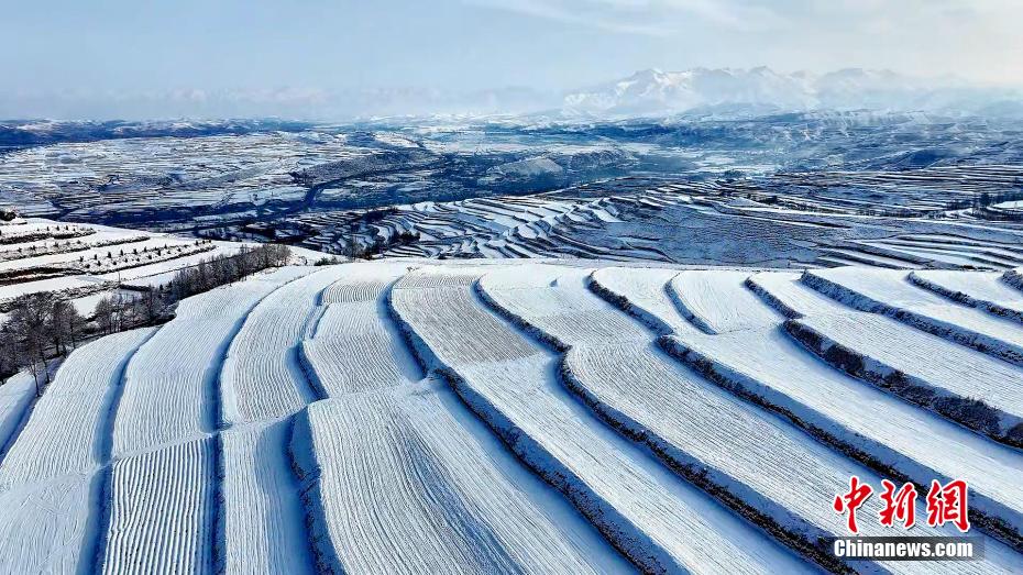 高原春日,青海省海東市互助土族自治縣東山鄉(xiāng),一場春雪過后,山巒、梯田在航拍鏡頭下宛若“大地指紋”。圖為山巒、田地被白雪覆蓋。