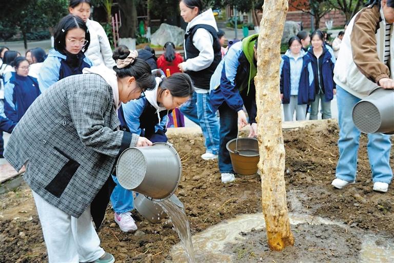 近日,四川省綿陽市安州中學組織首屆西藏班學生在該校沙汀廣場種下象征民族團結的石榴樹,埋下許愿瓶,鑄牢中華民族共同體意識,踐行“綠水青山就是金山銀山”的生態(tài)理念。