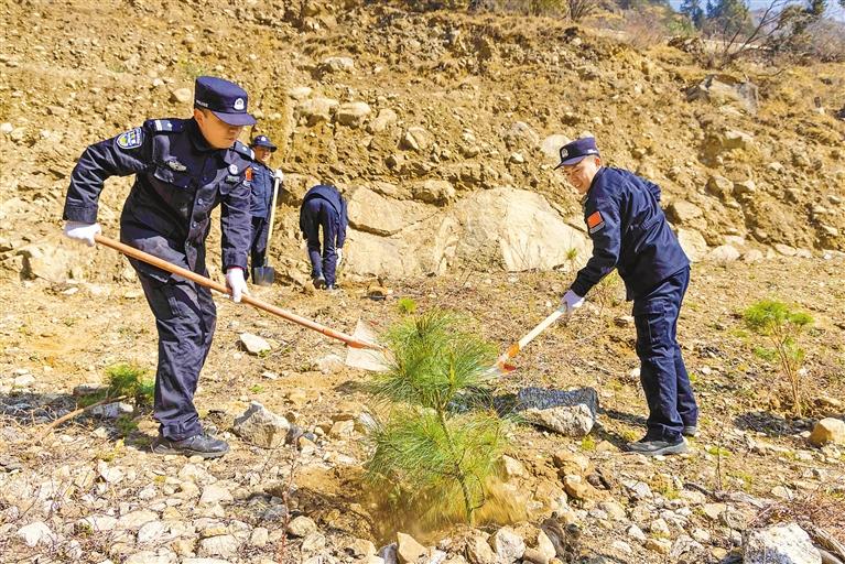 活動現場,民警與群眾組成協(xié)作小組,揮鍬鏟土、扶苗培土,嚴格按照技術標準栽種松、柏等樹苗。經過數小時奮戰(zhàn),數百株樹苗迎風挺立,為高原大地披上嶄新綠裝。