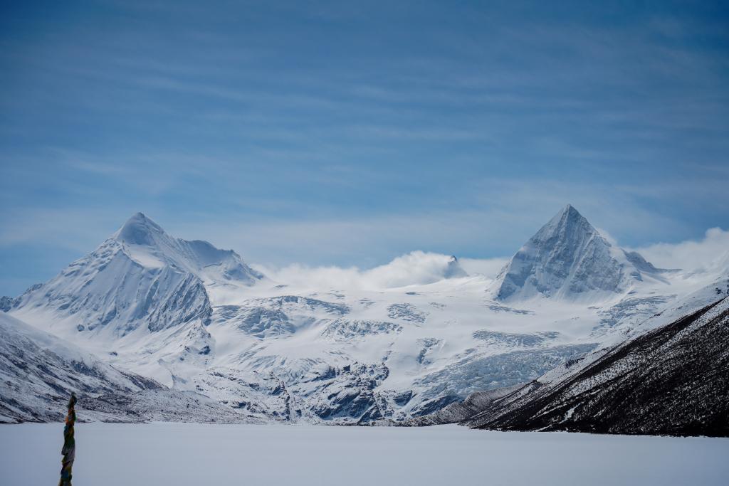 西藏那曲市比如縣境內的薩普雪山(2024年4月11日攝)。新華社記者田金文攝
