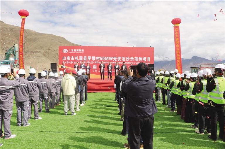 扎囊縣羅堆村50MW光伏治沙項目由廣東省能源集團西南(貴州)電力投資有限公司與中車株洲電力機車研究所有限公司聯(lián)合建設(shè),項目占地1073畝,總投資2.4億元。計劃于2025年10月30日前實現(xiàn)全容量并網(wǎng)發(fā)電,投產(chǎn)后預(yù)計年上網(wǎng)電量可達1億千瓦時,將有力推動山南市能源結(jié)構(gòu)向綠色低碳轉(zhuǎn)型。