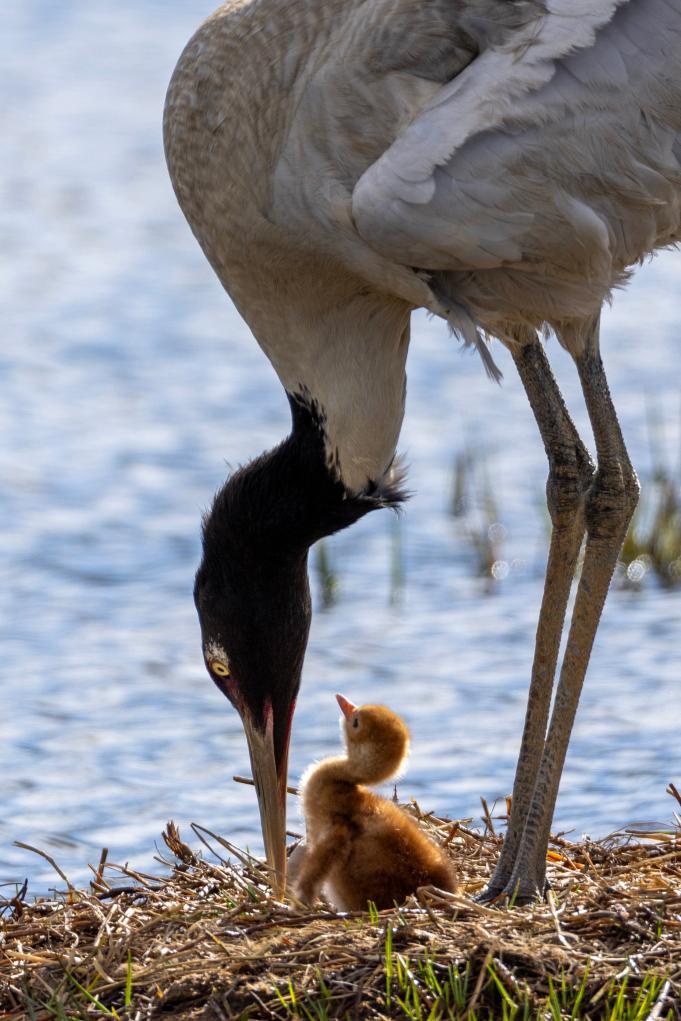 圖片中的這對黑頸鶴夫婦已連續(xù)8年在那曲市申扎縣申扎藏布濕地營巢育雛,并受到了普遍關注,每年都有攝影師前往拍攝。2024年,我們拍到了它們孵蛋的畫面。后來聽當?shù)匾氨T說,孵出的小鶴在兩個多月大的時候不幸夭折,這突如其來的打擊使得雌鶴抑郁了很長時間,有時會無緣無故地攻擊配偶,有時還會拔掉自己的尾羽,曾經形影不離的夫妻倆很長時間不窩在一起休息……幸運的是,如今的它們已走出悲傷。2025年6月4日,我們又拍到了它們雛鳥出殼的瞬間,如今,新出生的小家伙正在茁壯成長。