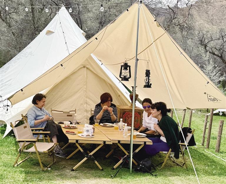 李女士說:“林卡中有一條小河流穿過,大人孩子可以在這里打水仗、坐船,玩累了還可以在這里燒烤,這就是我喜歡這里的原因。”除了當(dāng)?shù)厝?,還有很多游客喜歡來這里體驗,喝一杯啤酒,跳一曲鍋莊舞,感受一下當(dāng)?shù)卮緲愕拿耧L(fēng)。