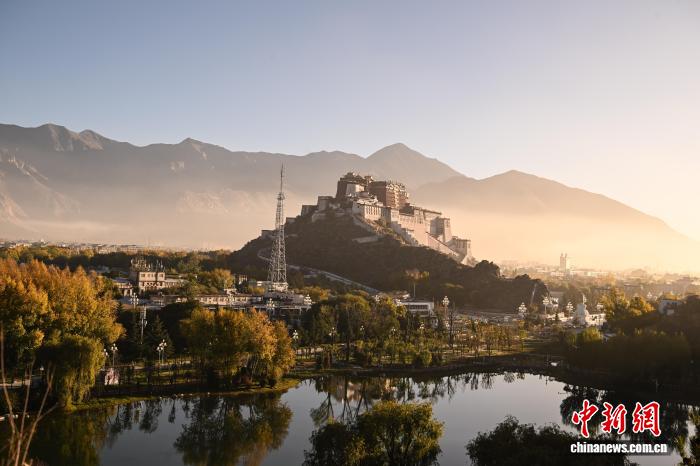 10月22日清晨,薄霧尚未散盡,西藏拉薩團(tuán)結(jié)公園的黃葉與布達(dá)拉宮相映成趣,勾勒出高原秋日的獨(dú)特畫卷。中新社記者 貢嘎來松 攝