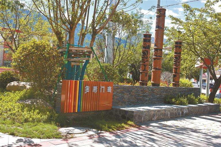 圖為位于林芝市巴宜區(qū)迎賓大道的“多彩門珞”口袋公園一角。記者 劉楓 攝