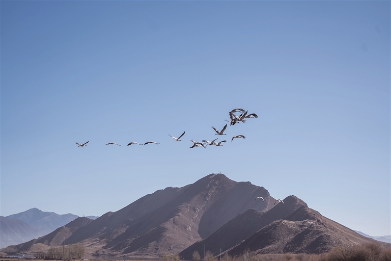 寒冬到來,雅江中游河谷黑頸鶴國家級自然保護(hù)區(qū)林周澎波區(qū)域迎來大批越冬黑頸鶴。作為國家一級保護(hù)動物、高原特有珍稀物種——黑頸鶴,2025年6月被正式評為拉薩市鳥,成為城市生態(tài)文化名片。它們在此駐足棲息、覓食嬉戲,勾勒出一幅人與生靈和諧共生的美好圖景。林周縣以制度護(hù)航、全民參與、科學(xué)管護(hù)等方式筑牢保護(hù)屏障,讓“高原仙子”安穩(wěn)越冬,用種群遞增印證高原生態(tài)保護(hù)實效。
