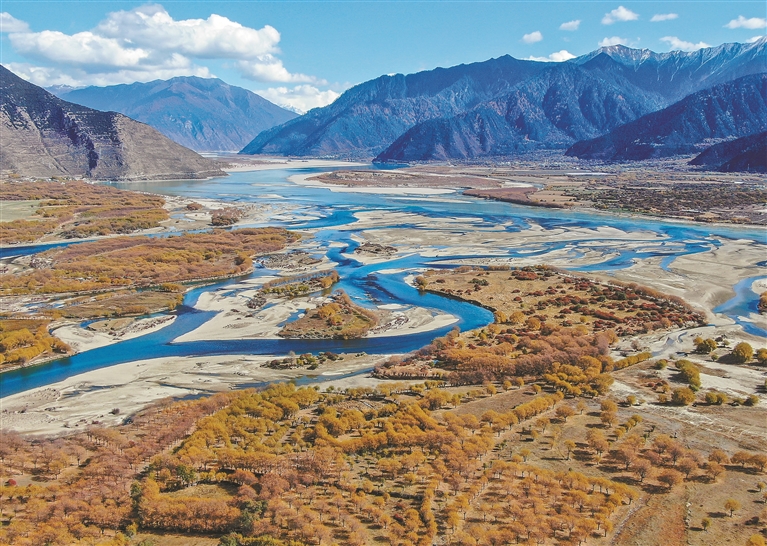 圖為林芝市巴宜區(qū)尼洋河生態(tài)景觀帶沿線風(fēng)光。記者 劉楓 攝