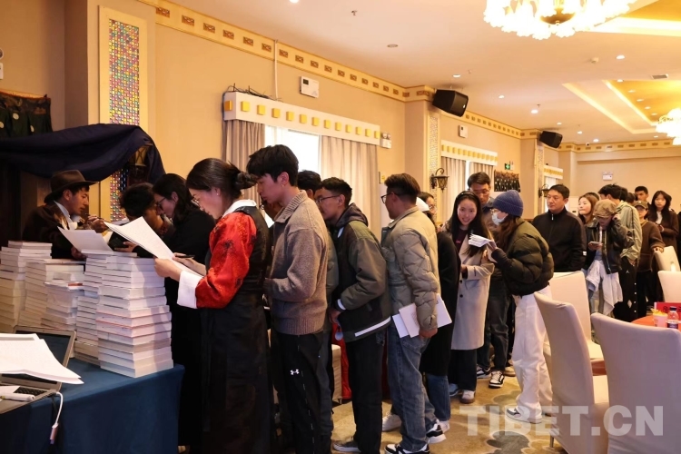 圖為現(xiàn)場讀者領(lǐng)取書籍。攝影:澤旺甲