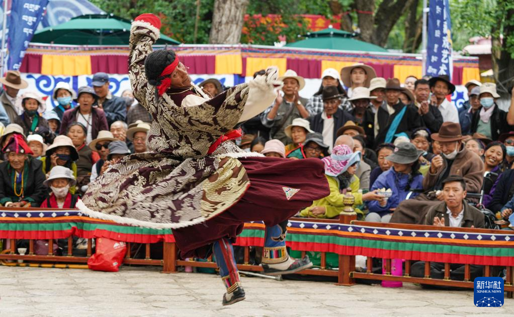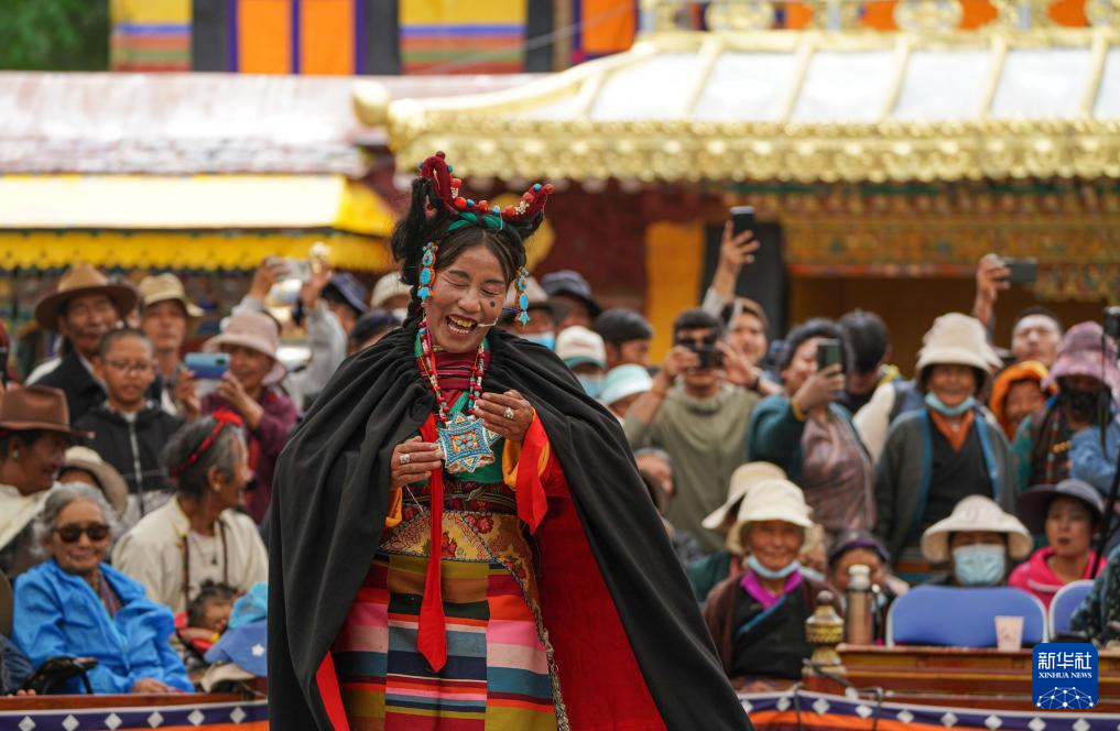 8月8日,山南市洛扎縣曲措藏戲隊(duì)在拉薩羅布林卡表演傳統(tǒng)藏戲《卓瓦桑姆》。新華社記者 晉美多吉 攝 ??