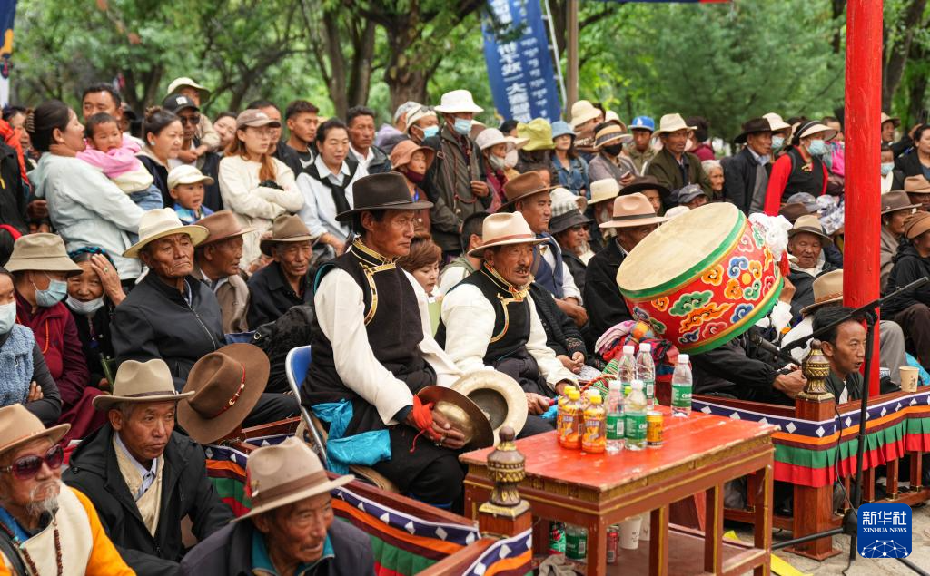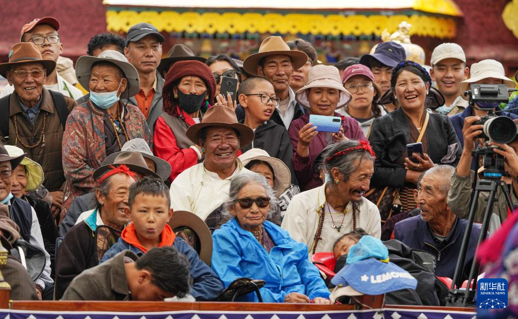 8月8日,觀眾在拉薩羅布林卡觀看傳統(tǒng)藏戲表演。新華社記者 晉美多吉 攝