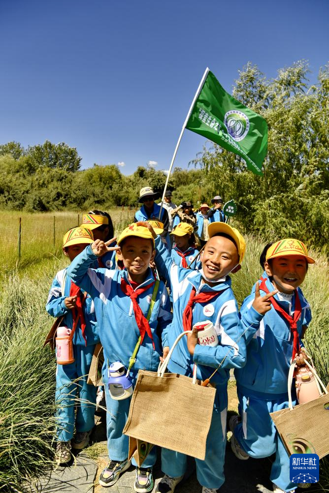 8月15日,拉魯濕地國(guó)家級(jí)自然保護(hù)區(qū)管理局的工作人員為小學(xué)生們進(jìn)行動(dòng)植物科普。新華社記者 張汝鋒 攝