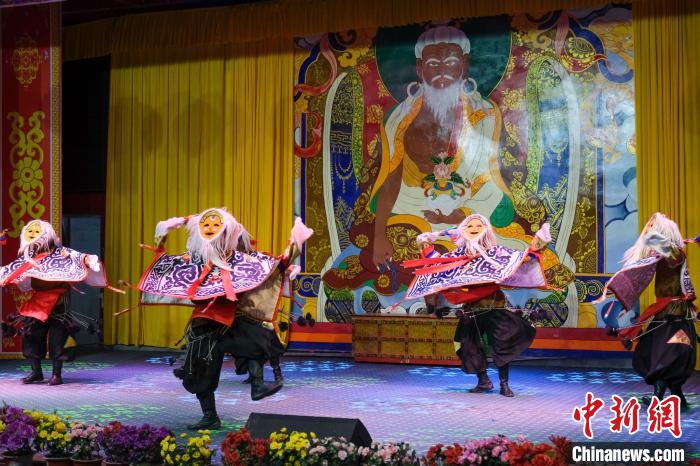9月7日晚,西藏山南扎西曲登社區(qū)的村民們以藏戲開場(chǎng),迎接游客前來(lái)觀看。中新社記者 江飛波 攝