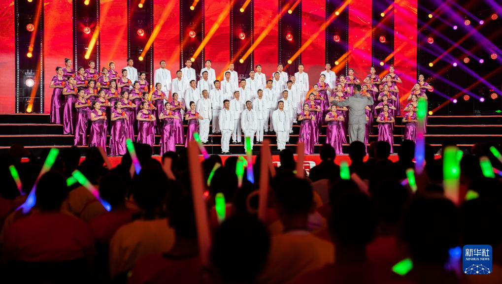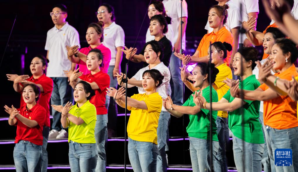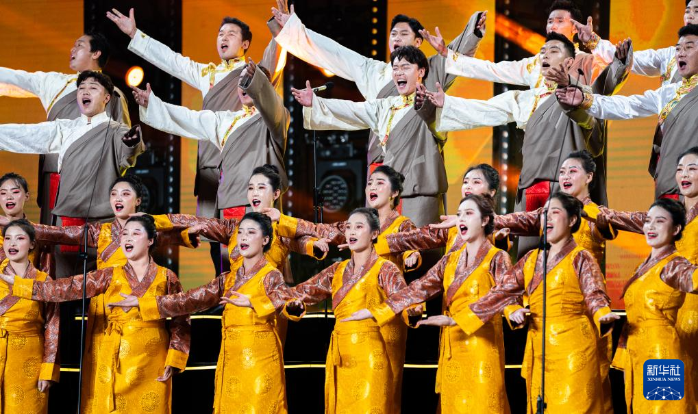 參賽隊(duì)伍在合唱大賽上演繹曲目(9月25日攝)。新華社記者 丁增尼達(dá) 攝 ??
