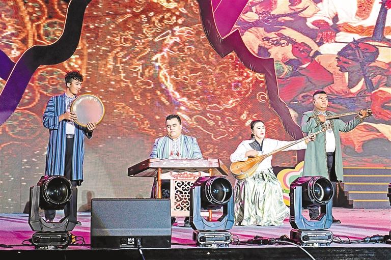 新疆喀什、和田的藝術(shù)家表演“新疆維吾爾木卡姆藝術(shù)”。
