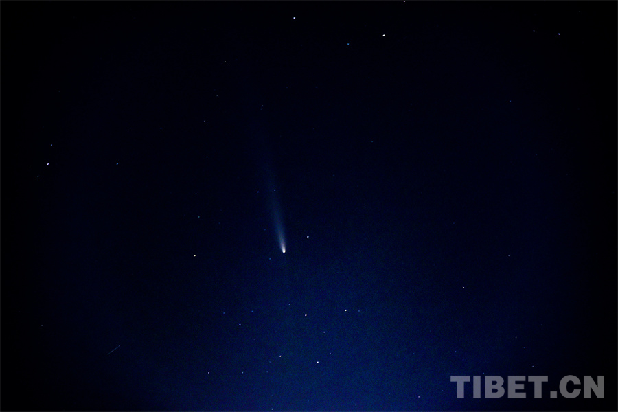 中國(guó)西藏網(wǎng)訊 近日,一顆6萬(wàn)年一遇的名為紫金山-阿特拉斯的彗星(C/2023 A3 Tsuchinshan-ATLAS,以下簡(jiǎn)稱“紫金山彗星”)“光臨”地球,吸引了眾多星空愛(ài)好者觀測(cè)。10月16日晚,記者在西藏自治區(qū)拉薩市柳梧大橋上有幸用相機(jī)記錄下這一時(shí)刻。