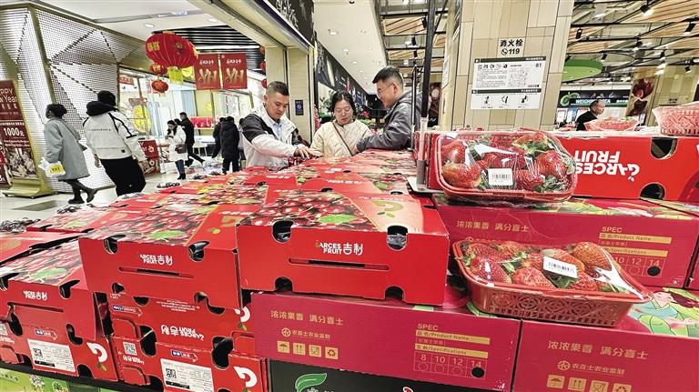 “車厘子多少錢一斤?”“老板,我要一箱車厘子?!苯?,記者來到城東貢布堂綜合農貿市場,眾多攤位將一箱箱車厘子擺在了醒目位置,顆顆飽滿誘人,吸引著絡繹不絕的市民前來詢價選購。正在挑選車厘子的市民李女士告訴記者:“家人都很愛吃車厘子,走了幾家水果店,發(fā)現(xiàn)這兒的價格比較實惠,品質也很好,就準備買一箱帶回去?!?/p>